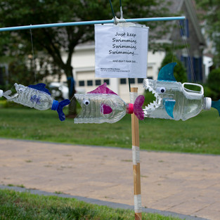 The invitation to the BIG FISH project was sent to everyone in the neighborhood, regardless of age and gender, encouraging the "bio-diversity" of species and colors as the key to the success of our “aquatic” exhibit. This exhibit showcased Happy Jelly Fish, Coy Fish, Killer Whale, Fishing with Uncle Bill, Home Delivery Fish, Just keep Swimming, School of Fish, King Fish Koran, Sea Bass... just to name a few.